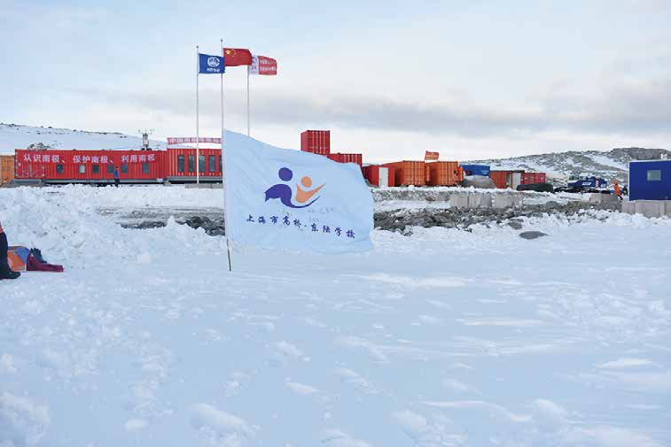 学校校旗飘扬在南极科考站